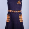 Ieloču svārki no rūtaina auduma ar kabatu sānu vīlē. Vidukļa apkārtmērs regulējams ar piepogājamu gumiju jostas iekšpusē. Sānā rāvējslēdzis.