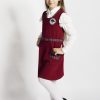 Sarafāns ar ieloču svārku daļu no rūtaina auduma ar kabatu sānu vīlē. Sarafāna garums koriģējams ar regulējamām lencēm. Sānā rāvējslēdzis.