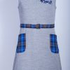 Džempera apkaklē zilas, baltas, melnas svītras kā vestei.