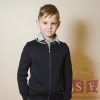 Krāsa: Tumši zila ar dzeltenām svītrām uz piedurkņu galiem