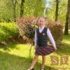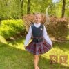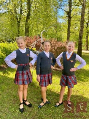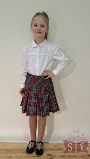 Ieloču svārki no rūtaina auduma ar kabatu sānu vīlē. Vidukļa apkārtmērs regulējams ar piepogājamu gumiju jostas iekšpusē. Sānā rāvējslēdzis.