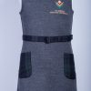 Adījums kombinējumā ar rūtainu audumu: sarafāna svārku daļa ielocēs un josta no rūtaina auduma.